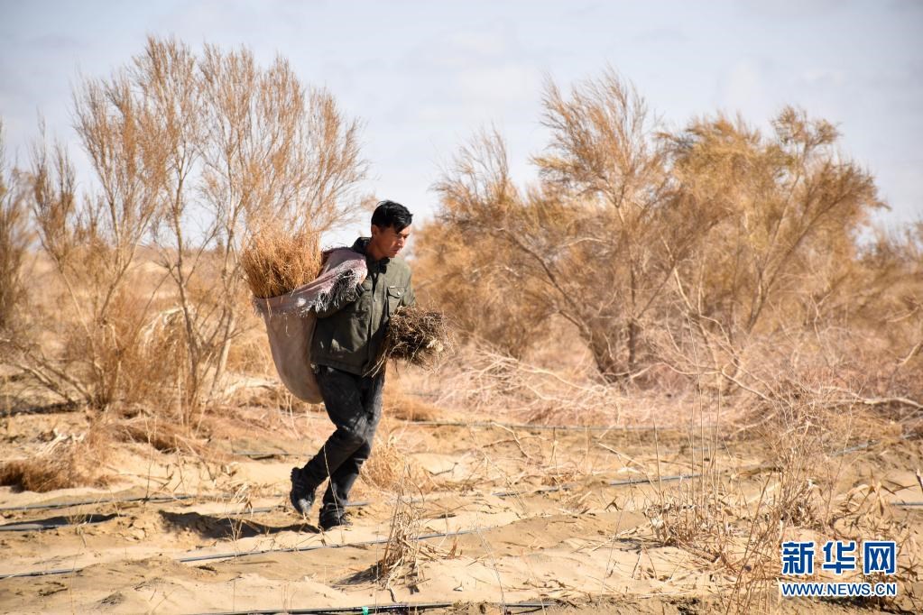 在且末縣,當(dāng)?shù)卦谥袊茖W(xué)院新疆生態(tài)與地理研究所的技術(shù)支持下,嘗試種植梭梭和大蕓。梭梭耐鹽堿、耐干旱,能防風(fēng)固沙;寄生在梭梭根部的大蕓具有很高的藥用價值,能讓沙漠產(chǎn)出經(jīng)濟(jì)價值。通過“承包治理、開發(fā)經(jīng)營、收益歸己”的招商原則,目前已吸引10家企業(yè)參與進(jìn)來,走出一條生態(tài)與經(jīng)濟(jì)同步發(fā)展的新路。