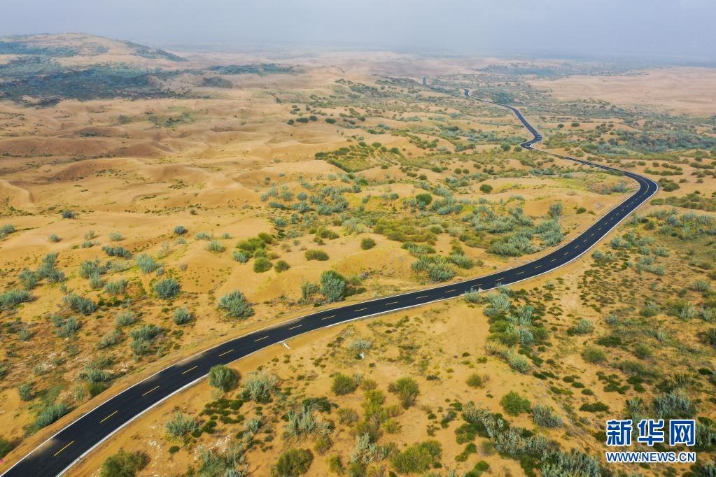 這是位于內(nèi)蒙古達(dá)拉特旗境內(nèi)的庫布其沙漠(2020年9月14日攝,無人機(jī)照片)。新華社記者 連振 攝