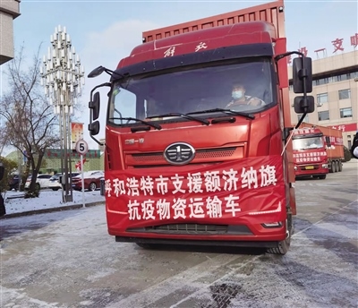 鑒于額濟(jì)納旗疫情防控任務(wù)依然艱巨、醫(yī)療物資用量仍然很大,呼和浩特市新冠病毒疫情聯(lián)防聯(lián)控暨新冠病毒疫情防控工作指揮部決定立即捐贈(zèng)第一批價(jià)值300萬元的防疫物資。在呼和浩特市新冠病毒疫情聯(lián)防聯(lián)控暨新冠病毒疫情防控工作指揮部的統(tǒng)籌部署下,指揮部物資保障組成員單位市財(cái)政局、發(fā)改委、衛(wèi)健委、商務(wù)局、交通局、紅十字會(huì)全力以赴、齊心協(xié)力,愛心企業(yè)、金融機(jī)構(gòu)積極捐贈(zèng),呼和浩特警備區(qū)傾力相助,讓愛心“大禮包”如期發(fā)貨。在發(fā)車現(xiàn)場(chǎng),中國(guó)銀行股份有限公司內(nèi)蒙古自治區(qū)分行辦公室主任葛華表示,面對(duì)疫情,中國(guó)銀行內(nèi)蒙古分行支援抗疫責(zé)無旁貸,重任在肩必須挺身,義無反顧地與全區(qū)人民站在一起,守望相助、同心戰(zhàn)“疫”、共克時(shí)艱,在積極做好疫情防控和金融服務(wù)的同時(shí),主動(dòng)擔(dān)當(dāng)責(zé)任,通過紅十字會(huì)向呼和浩特市、阿拉善盟、二連浩特市捐款近百萬元,為地方開展疫情防控盡一份綿薄之力。金宇生物技術(shù)股份有限公司黨委副書記張占福告訴記者:“疫情無情,人間有愛。作為動(dòng)物疫苗生產(chǎn)企業(yè),能為我區(qū)抗擊疫情出一份力,奉獻(xiàn)一份愛,是企業(yè)應(yīng)盡的社會(huì)責(zé)任和義務(wù)。”在共抗疫情的關(guān)鍵時(shí)刻,內(nèi)蒙古顯鴻科技股份有限公司積極響應(yīng)市政府號(hào)召,在做好企業(yè)疫情防控的同時(shí),第一時(shí)間組織抗疫物資,用實(shí)際行動(dòng)踐行顯鴻科技“愛黨、愛國(guó)、愛企、愛家”情懷。短短幾天時(shí)間內(nèi),伊利、蒙牛、盛健、華訊等18家企業(yè)進(jìn)行愛心捐贈(zèng),大家同心同德、同向同行,堅(jiān)決助力自治區(qū)打贏這場(chǎng)疫情防控阻擊戰(zhàn)。