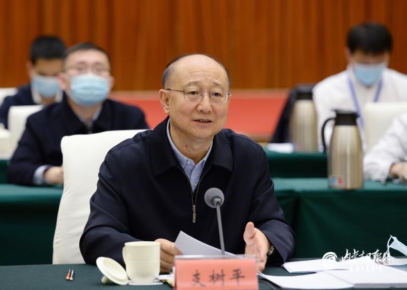 11月13日下午,中央第四督導(dǎo)組組長、全國政協(xié)常委、提案委員會副主任支樹平出席會議并反饋督導(dǎo)意見。內(nèi)蒙古日報(bào)社融媒體記者 袁永紅 攝