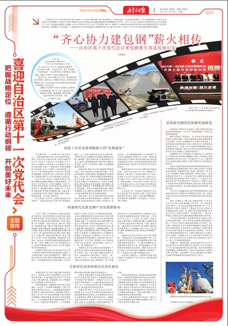 這里是習近平總書記指出的內蒙古創(chuàng)造了“齊心協(xié)力建包鋼”歷史佳話的地方;這里曾見證了在黨和國家領導下,來自祖國四面八方的8萬多各族兒女匯聚塞外,以戰(zhàn)天斗地的氣魄和人定勝天的信念在北疆荒漠建成草原鋼城的火紅歲月。如今,在習近平新時代中國特色社會主義思想指引下,新一代包鋼人賡續(xù)紅色血脈,從2016年到2021年,用了五年時間,戰(zhàn)巨虧,渡難關,以前所未有的改革勇力和百折不撓的攻堅勇氣,使企業(yè)起死回生、涅槃重生,從營業(yè)收入上創(chuàng)造出用五年時間再造兩個包鋼的奇跡,在內蒙古這片熱土上續(xù)寫了“齊心協(xié)力建包鋼”的新時代篇章。