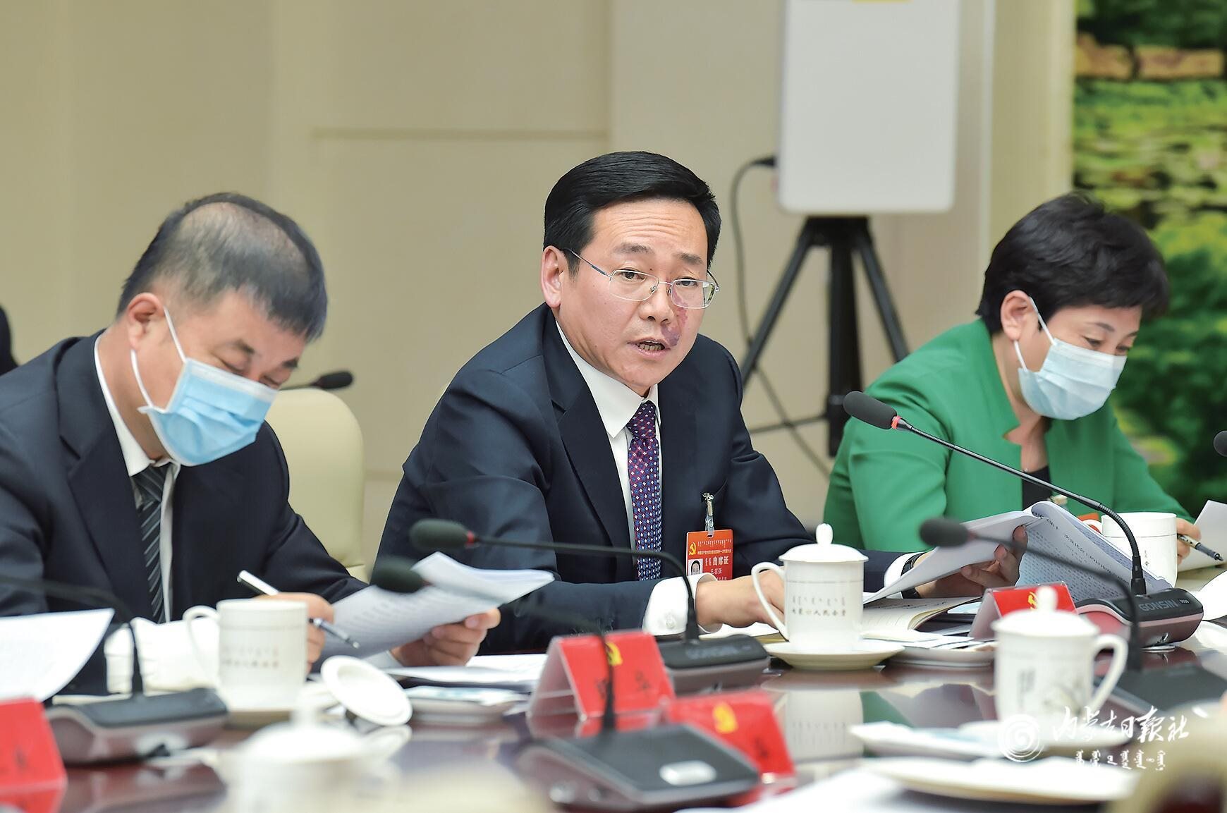 王羽強(qiáng)代表建議對(duì)鄂托克前旗的新能源產(chǎn)業(yè)項(xiàng)目審批和項(xiàng)目推進(jìn)給予更多的重視和支持。內(nèi)蒙古日?qǐng)?bào)記者馬建荃攝