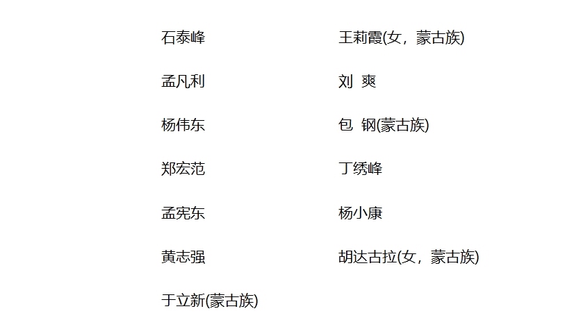 中國共產(chǎn)黨內(nèi)蒙古自治區(qū)第十一屆委員會常務(wù)委員會委員名單(13人)