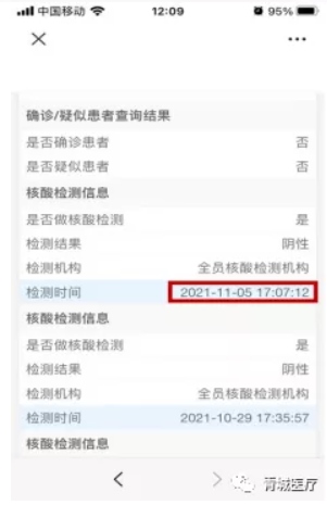 市民7天內(nèi)所做的核酸檢測結(jié)果會在健康碼綠碼下方顯示,7天之后信息會轉(zhuǎn)到綠碼下方的“個人健康風(fēng)險評估(初步流調(diào))表”中,點(diǎn)擊后可查看最近3次的核酸檢測結(jié)果。核酸檢測結(jié)果具體到日期和具體時點(diǎn)。