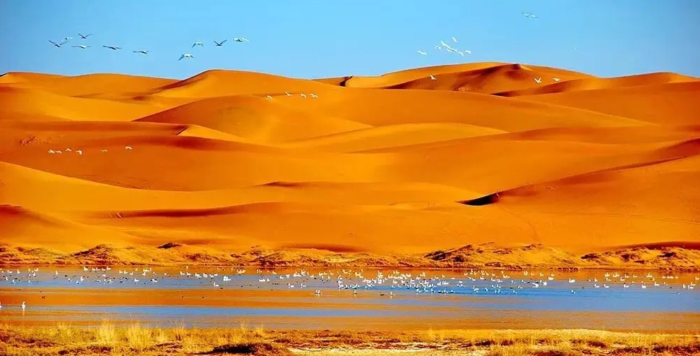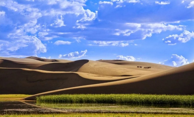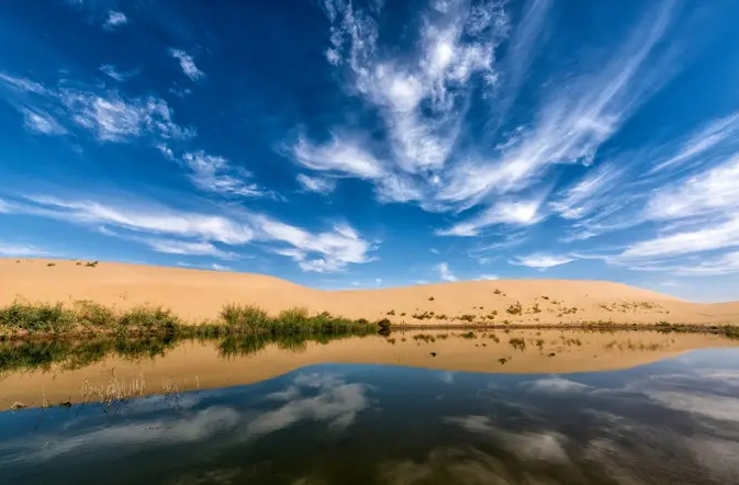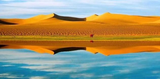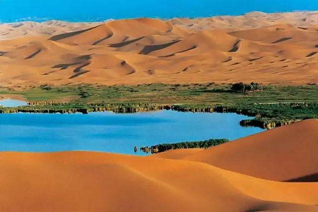 巴丹吉林沙漠年降水量不足40毫米,但是沙漠中的湖泊竟然多達(dá)100多個(gè)。高聳入云的沙山,神秘莫測(cè)的鳴沙,靜謐的湖泊、濕地,構(gòu)成了巴丹吉林沙漠獨(dú)特的迷人景觀,于2005年被《中國(guó)國(guó)家地理》雜志評(píng)為中國(guó)最美麗的沙漠,每年吸引了上萬名國(guó)內(nèi)外游客前來觀光。