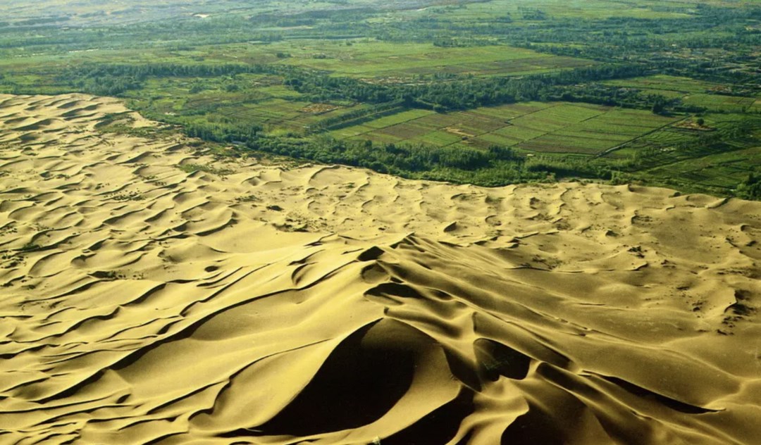 沙海披綠裝,荒漠變綠洲。