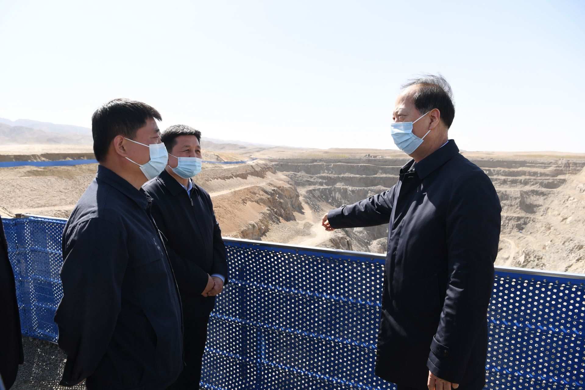 石泰峰首先來到華拓礦業(yè)公司阿力奔公忽洞鐵礦(原生金礦業(yè)公司),詳細(xì)了解越界開采、尾砂隨意堆放等問題及整改治理情況。看著鐵礦開采挖出的大坑,現(xiàn)場(chǎng)還不時(shí)刮起漫天黃沙,他嚴(yán)肅指出,這種置法律法規(guī)于不顧的野蠻行徑,破壞和影響的不僅僅是當(dāng)?shù)氐纳鷳B(tài)環(huán)境,更是我國(guó)北方生態(tài)安全屏障、國(guó)家生態(tài)安全。他強(qiáng)調(diào),維護(hù)生態(tài)安全是必須始終牢記在心的“國(guó)之大者”,不論是企業(yè)還是政府都不能為了追求短期利益而不算大賬、長(zhǎng)遠(yuǎn)賬,不能以犧牲生態(tài)環(huán)境為代價(jià)換取一時(shí)一地的經(jīng)濟(jì)增長(zhǎng)。各級(jí)各方面都要做生態(tài)安全屏障的建設(shè)者、守護(hù)者,決不能做破壞者。