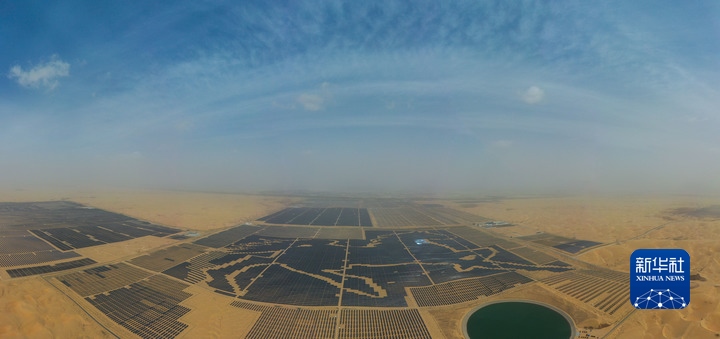 鄂爾多斯市庫布其沙漠深處,由近20萬塊深藍(lán)色光伏板構(gòu)成的巨型駿馬圖令人震撼,不少“拍客”慕名而來。這處駿馬光伏電站相當(dāng)于180多個(gè)標(biāo)準(zhǔn)足球場(chǎng)大小,板上發(fā)電、板下種植,既利用豐富的太陽能資源,又推動(dòng)沙漠生態(tài)治理。