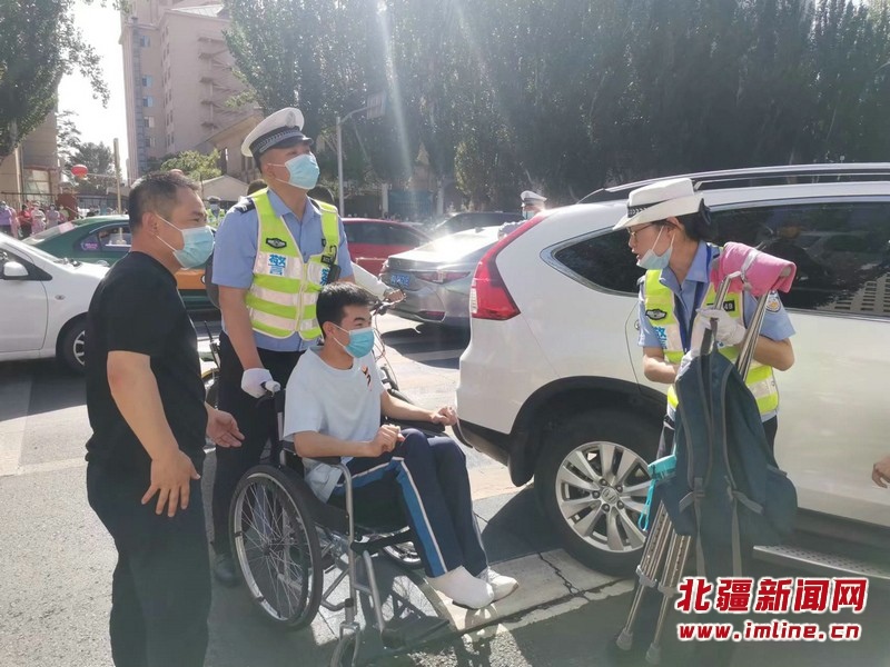 現(xiàn)場最讓感動的是,一位腳扭傷的考生,在兩名交警的幫助下坐上輪椅進入考場?!坝辛怂麄兊膸椭瑴p少了我們的焦慮,心情輕松了很多,而且今天早早就來到了考場?!笨忌议L介紹,昨天看考場時,交警同志得知孩子的腳扭傷后,今天特意趕來護送學生進入考場。