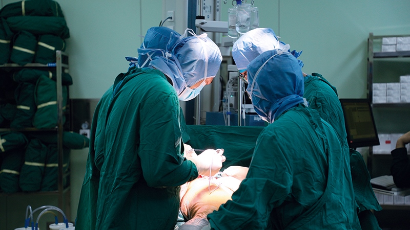 內(nèi)蒙古醫(yī)科大學第二附屬醫(yī)院的醫(yī)生利用集中帶量采購的人工關(guān)節(jié)進行手術(shù)(2022年4月攝) 內(nèi)蒙古醫(yī)科大學第二附屬醫(yī)院供圖