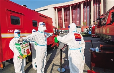 10月20日,在內(nèi)蒙古革命歷史博物館方艙醫(yī)院,呼和浩特市消防救援支隊消防員正在做個人消殺。本輪疫情發(fā)生以來,該支隊累計執(zhí)行消毒消殺任務(wù)300余次,完成室內(nèi)消殺近15萬平方米、消防安全線上檢查指導(dǎo)近500(家)次,為疫情防控貢獻(xiàn)消防力量。(內(nèi)蒙古日報社融媒體記者記者 懷特烏勒斯 通訊員 隆雪 攝)