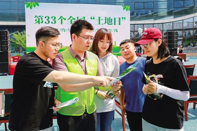 6月25日,自治區(qū)自然資源廳工作人員正在向市民宣傳耕地保護制度和節(jié)約集約用地制度的舉措和成效。當(dāng)天是第33個全國土地日,宣傳主題是“節(jié)約集約用地嚴(yán)守耕地紅線”。記者孟和朝魯攝