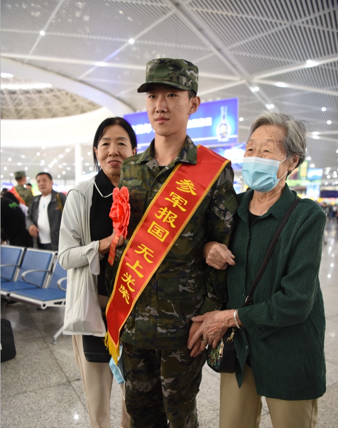 在新兵歡送現(xiàn)場(chǎng),一位83歲高齡的老人田粉仙送外孫出征,這一幕讓在場(chǎng)的人感動(dòng)不已。老人告訴筆者:“老伴就是軍人,家里好幾個(gè)子女也都當(dāng)過兵,希望外孫也能向家人學(xué)習(xí),到部隊(duì)要好好干,聽黨的話,為國家出力......” 姥姥樸實(shí)的話語寄托著對(duì)外孫深情的希望與殷切的期盼。