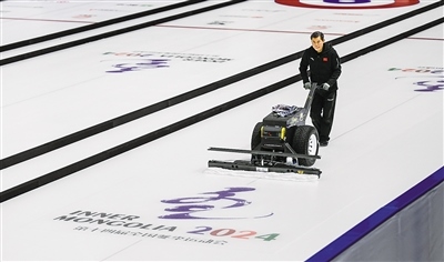 12月7日,走進位于呼倫貝爾市海拉爾區(qū)的內(nèi)蒙古自治區(qū)冰上運動訓練中心冰球冰壺館,只見制冰師正在一遍又一遍地修整冰面,為即將到來的“十四冬”冰壺項目青年組比賽做準備。