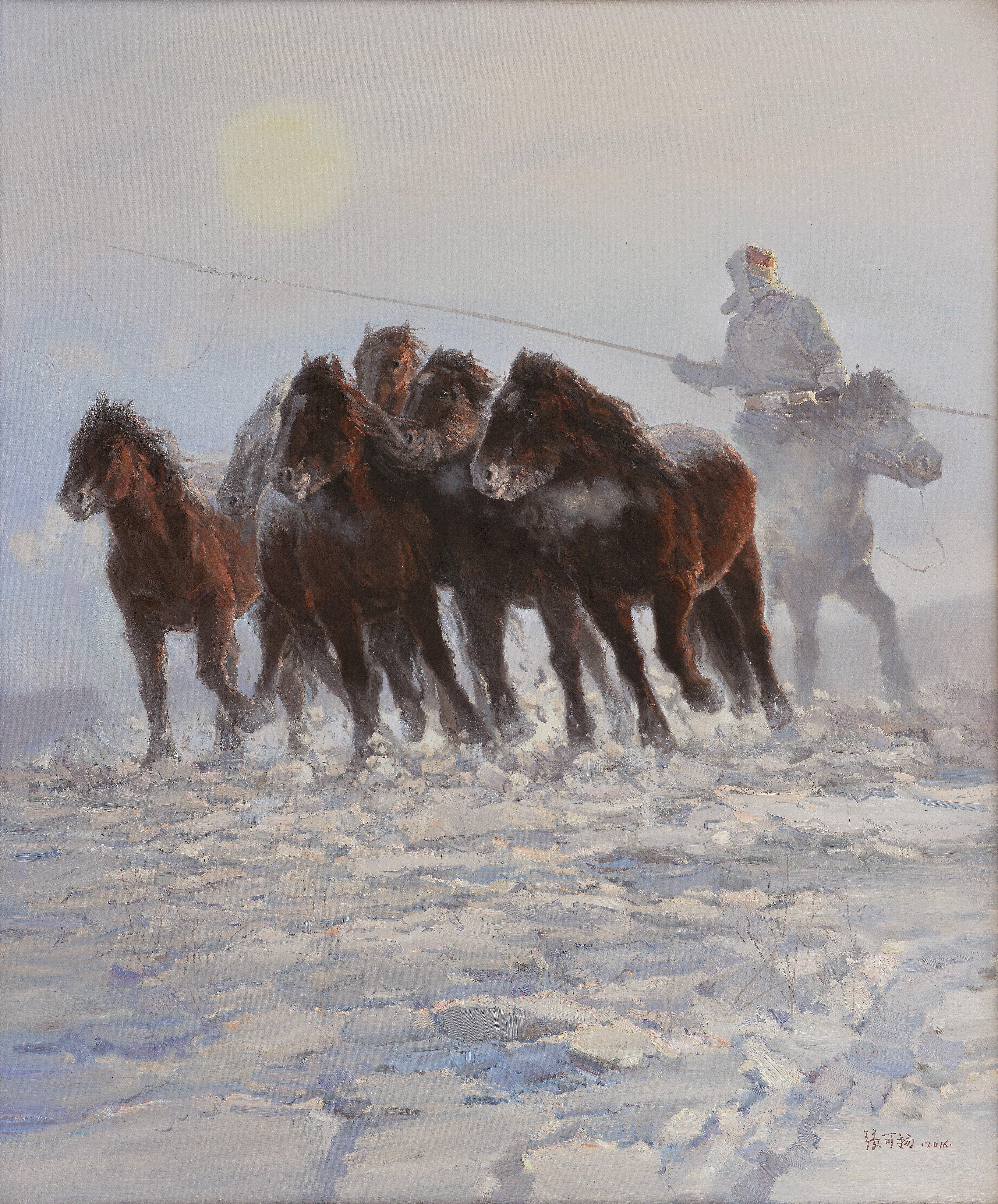 張可揚(yáng)《天驕飛雪邀明月》油畫