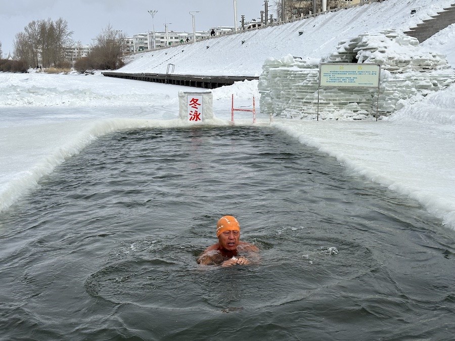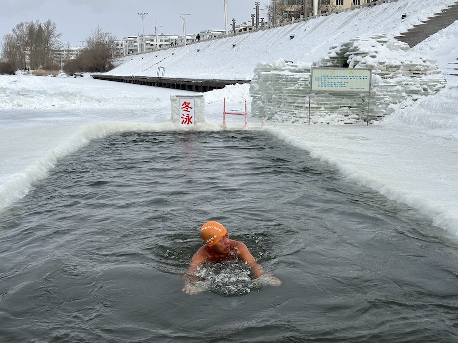 北疆新聞呼倫貝爾1月14日消息(記者 楊凈毓 李文華)1月中旬的內(nèi)蒙古呼倫貝爾,冰天雪地中,海拉爾冬泳協(xié)會(huì)在零下21℃的溫度下,鑿冰冬泳祝福第十四屆全國冬季運(yùn)動(dòng)會(huì)召開。