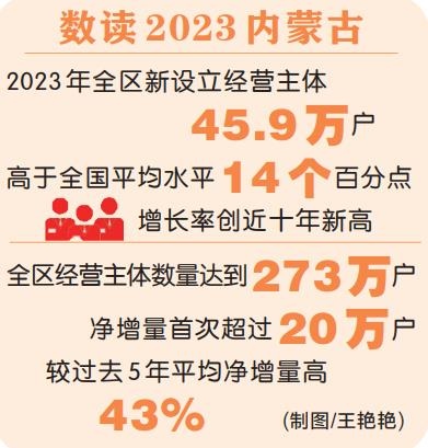 經(jīng)營主體迸發(fā)出新活力。2023年,自治區(qū)市場監(jiān)管局出臺便捷市場準(zhǔn)入助力招商引資九條措施,取消、下放行政審批事項(xiàng)26項(xiàng),減少環(huán)節(jié)113個。個體工商戶設(shè)立登記等31項(xiàng)、589項(xiàng)具體項(xiàng)目實(shí)現(xiàn)全區(qū)通辦,申請人可以在“家門口”辦“外地事”,全區(qū)經(jīng)營主體呈現(xiàn)數(shù)量增長、結(jié)構(gòu)優(yōu)化、活躍度提升的良好態(tài)勢。2023年全區(qū)新設(shè)立經(jīng)營主體45.9萬戶,高于全國平均水平14個百分點(diǎn),增長率創(chuàng)近十年新高;全區(qū)經(jīng)營主體數(shù)量達(dá)到273萬戶,凈增量首次超過20萬戶,較過去五年平均凈增量高43%。在培育壯大經(jīng)營主體上,集成金融、用工、創(chuàng)新等各領(lǐng)域15條硬措施落地,小微企業(yè)和個體工商戶總量分別增長7.59%和7.3%。在激發(fā)經(jīng)營主體創(chuàng)新活力上,推動“一站式”服務(wù)進(jìn)園區(qū)、進(jìn)企業(yè),服務(wù)企業(yè)44761家,減免費(fèi)用、節(jié)約成本7154萬元?!懊伞弊謽?biāo)認(rèn)證帶動377種產(chǎn)品實(shí)現(xiàn)增值,知識產(chǎn)權(quán)質(zhì)押融資達(dá)到48.21億元。