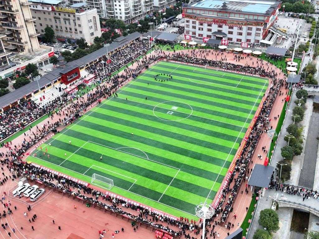2月3日,觀眾在“村超”賽場等待活動開始(無人機(jī)照片)。新華社記者劉續(xù)攝