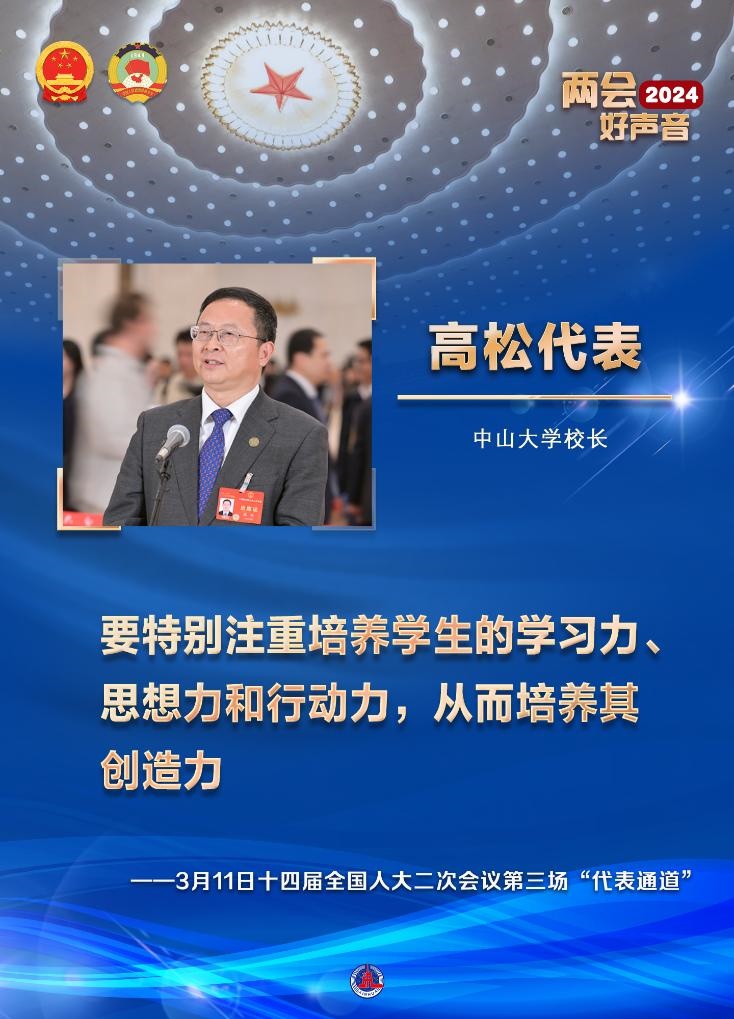 青年人是未來創(chuàng)新的希望。對(duì)于如何培養(yǎng)學(xué)生的創(chuàng)造力,中山大學(xué)校長高松代表給出了他的答案:要特別注重培養(yǎng)學(xué)生的學(xué)習(xí)力、思想力和行動(dòng)力,從而培養(yǎng)其創(chuàng)造力。