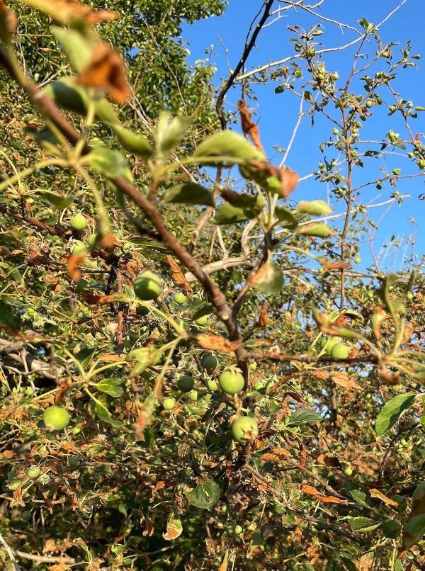 ??多年后,隨著條件改善,村里打上機(jī)井,大壩逐漸廢棄,壩下無人料理的果樹卻還年年結(jié)果。今年,又有不少綠色小果子掛在枝頭。馮玉寬每到夏天都要回來摘一點(diǎn),帶回家曬果干?!斑@就是一種情結(jié)。小時(shí)候放暑假,我們孩子就來這吃果子,吃到肚脹……”