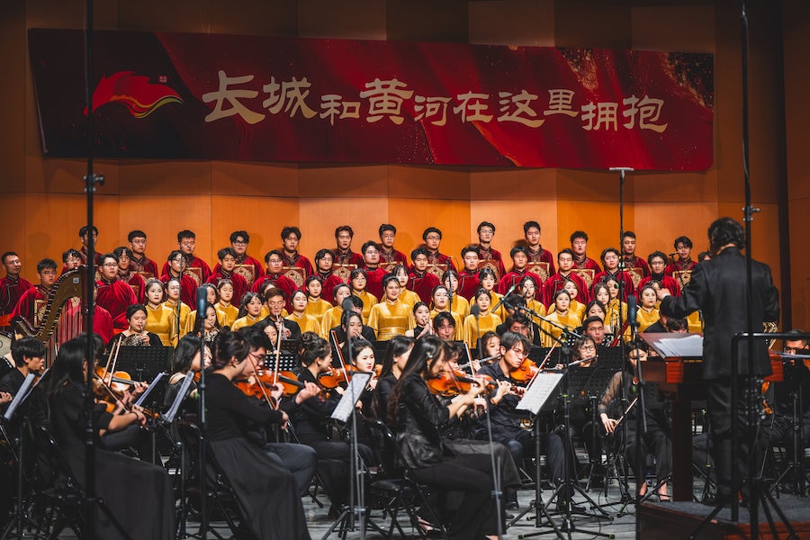 整場(chǎng)演出以“相擁”“相依”“相融”三個(gè)篇章的宏大敘述,深情表達(dá)“黃河兩岸是我家,長(zhǎng)城內(nèi)外是故鄉(xiāng)”,通過(guò)對(duì)民族優(yōu)秀音樂(lè)曲目的創(chuàng)新、對(duì)經(jīng)典藝術(shù)作品的再現(xiàn),展示北疆大地長(zhǎng)城文化、黃河文化的深厚底蘊(yùn)和鮮明特質(zhì)。
