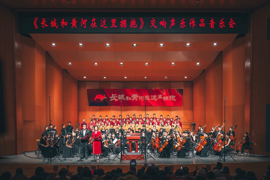 12月20日晚,“長(zhǎng)城和黃河在這里擁抱”交響聲樂(lè)作品音樂(lè)會(huì)在內(nèi)蒙古藝術(shù)學(xué)院新華校區(qū)演藝廳華美上演。