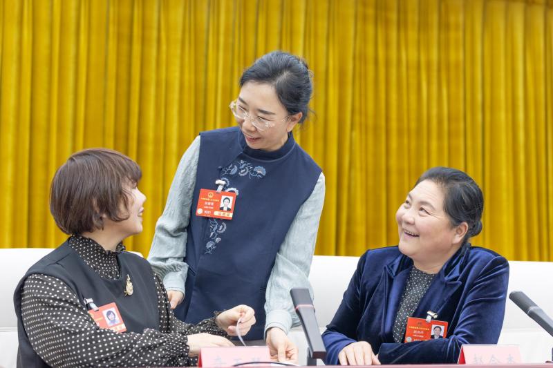 3月7日,全國(guó)人大代表胡海娟(左)建議,通過在各級(jí)學(xué)校設(shè)立專職家庭教育指導(dǎo)教師等舉措,強(qiáng)化家庭教育指導(dǎo),推動(dòng)家校社協(xié)同育人,促進(jìn)青少年健康成長(zhǎng)。記者 于濤 攝