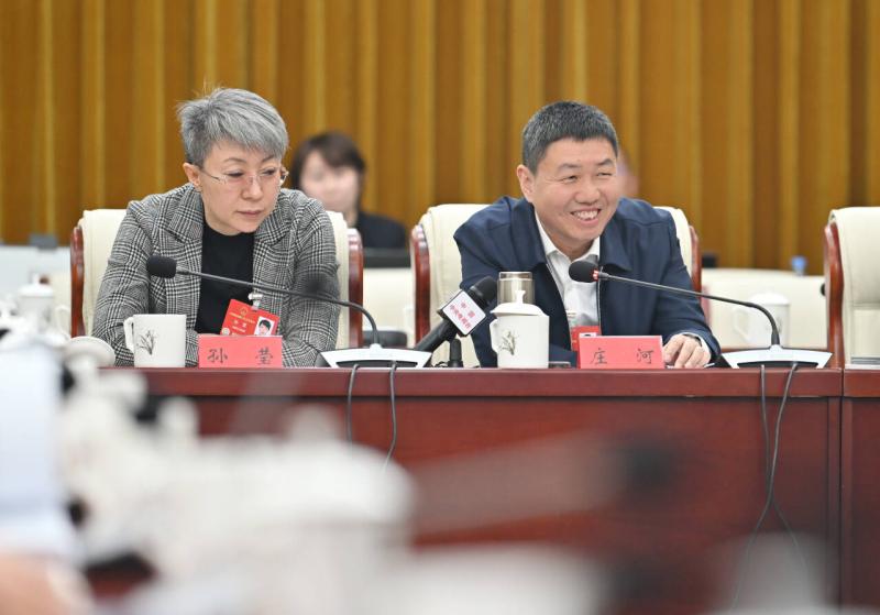 3月7日,全國(guó)人大代表莊河(右)說,中國(guó)鐵路呼和浩特局集團(tuán)有限公司將積極落實(shí)政府工作報(bào)告的相關(guān)要求,加強(qiáng)鐵路基礎(chǔ)設(shè)施建設(shè),優(yōu)化客運(yùn)產(chǎn)品,實(shí)現(xiàn)多樣供給,大力發(fā)展鐵路現(xiàn)代物流,發(fā)揮好鐵路對(duì)推動(dòng)經(jīng)濟(jì)社會(huì)高質(zhì)量發(fā)展的支撐保障作用。記者 馬建兵 攝