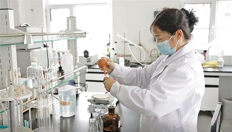 內(nèi)蒙古潔泰諾生物科技有限公司質(zhì)檢中心工作人員進(jìn)行取樣分析。楊麗芳 攝