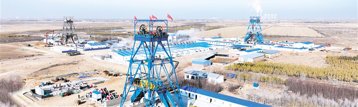 在距此90多公里的鄂托克前旗上海廟經(jīng)濟(jì)開發(fā)區(qū),能源主戰(zhàn)場的鷹駿一號煤礦項(xiàng)目建設(shè)同樣如火如荼。現(xiàn)場大型機(jī)械來回穿梭,作業(yè)機(jī)械有序進(jìn)行著主、副礦井的井筒掘砌工作。加工車間旁,焊接師傅正聚精會神地焊著鋼板接口,現(xiàn)場一片繁忙景象。
