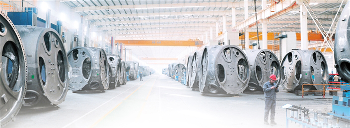 3月7日,走進(jìn)科爾沁工業(yè)園區(qū),在蒙東(通遼)風(fēng)電裝備制造產(chǎn)業(yè)基地內(nèi)蒙古龍馬鑄造有限公司精工車間里,各條生產(chǎn)線有序運(yùn)轉(zhuǎn),工人們正在進(jìn)行風(fēng)電輪轂加工、底座側(cè)鏜加工等作業(yè)?!敖衲甏汗?jié),我們只休息了兩天,從初二起,全生產(chǎn)線便滿負(fù)荷運(yùn)轉(zhuǎn),全力追趕訂單進(jìn)度?!眱?nèi)蒙古龍馬制造有限公司副總經(jīng)理時偉介紹道。