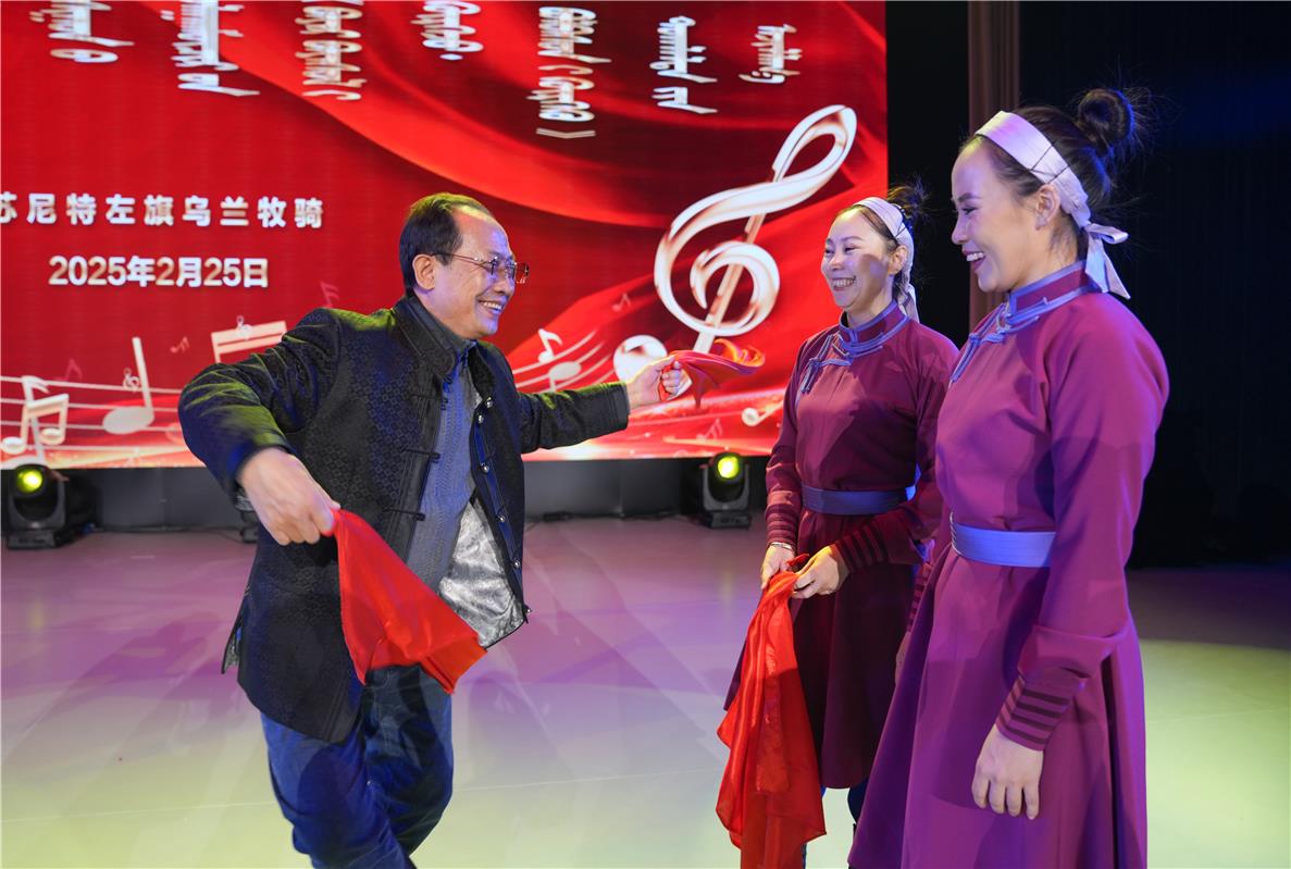 “如今,內(nèi)蒙古大地上活躍著75支像我們這樣的烏蘭牧騎隊(duì)伍,3000多名隊(duì)員每年演出超過1萬場。我們將牢記‘到人民中間去’,扎根生活沃土,深入挖掘內(nèi)蒙古這片廣袤土地上厚重的歷史文化資源,努力創(chuàng)作更多接地氣、傳得開、留得下的優(yōu)秀作品,為鑄牢中華民族共同體意識、促進(jìn)民族團(tuán)結(jié)進(jìn)步貢獻(xiàn)力量?!?/p>