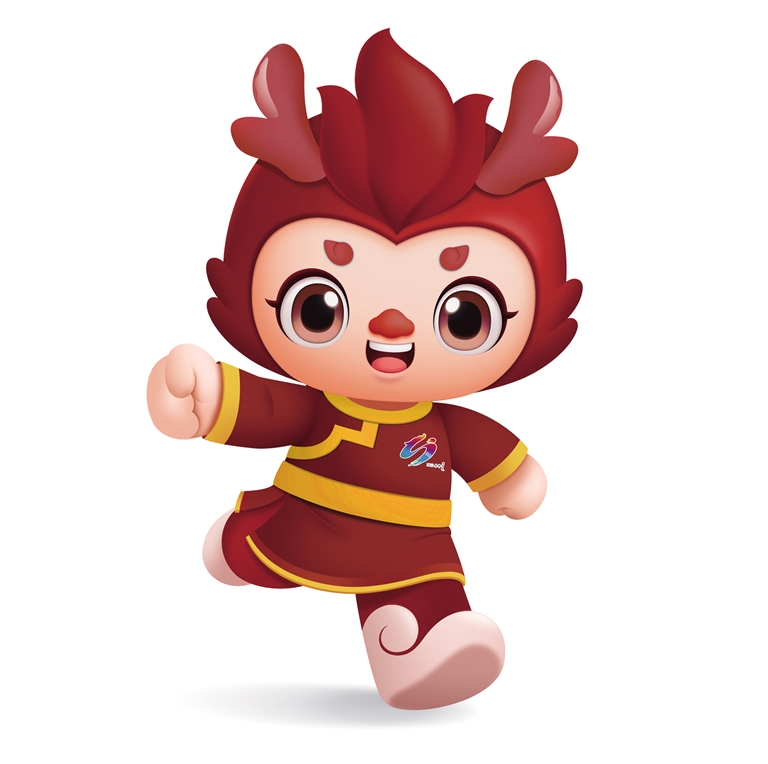 吉祥物“赤龍兒”,寓意鮮明、簡潔響亮,又有舉辦地“赤峰”的內(nèi)涵。吉祥物活潑可愛、聰慧靈動(dòng),身著以赭紅色(赤峰紅山山體顏色)和黃色為整體色彩的民族服飾,既凸顯“紅山文化”特色,又體現(xiàn)運(yùn)動(dòng)會(huì)激情熱烈、陽光活力的氛圍;臉上洋溢著自豪的笑容,以奔跑的姿態(tài)歡迎各地來賓蒞臨赤峰,充分展現(xiàn)內(nèi)蒙古各族人民勤勞樸實(shí)、熱情好客的優(yōu)良品質(zhì)。