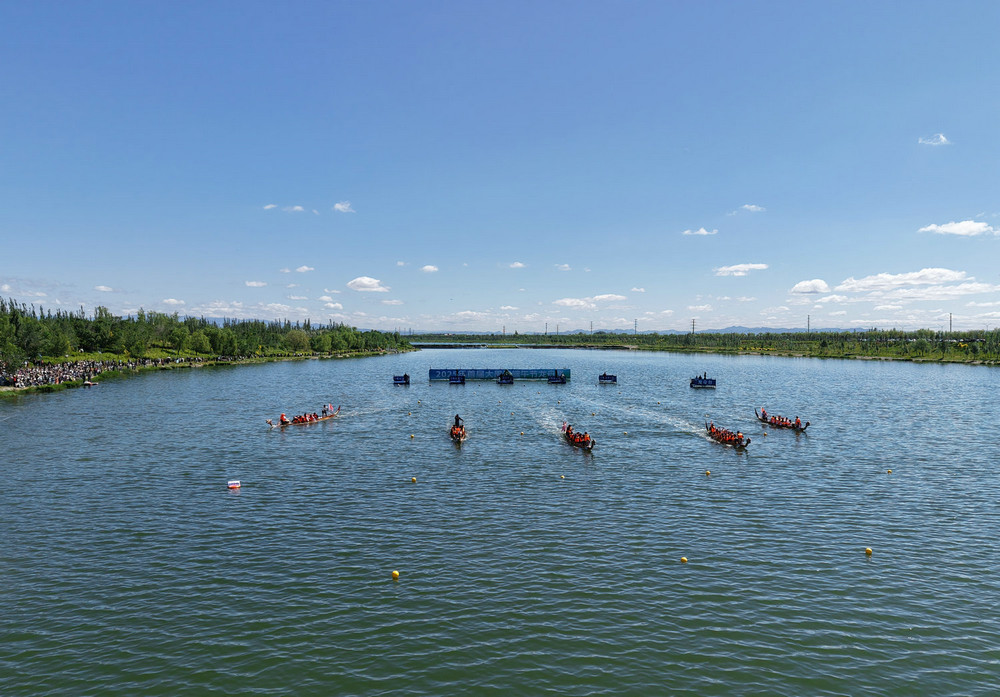 5月31日,呼和浩特大黑河賽罕區(qū)段相當(dāng)熱鬧,河面波光粼粼,岸邊人山人海,近萬市民和游客都趕來圍觀2025年首屆大黑河端午龍舟賽。這次比賽吸引了50多支隊伍600多人參賽。