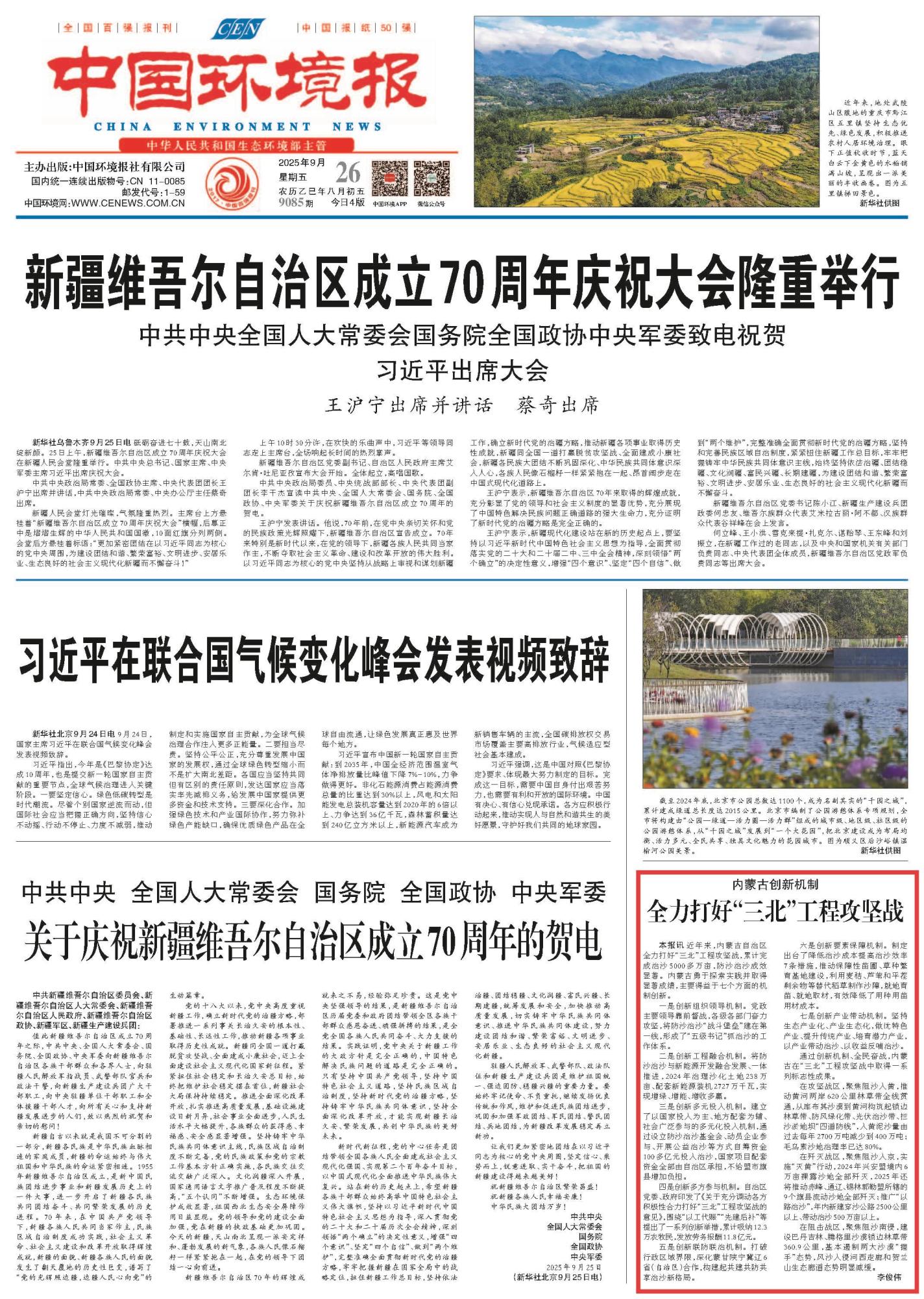 2025年9月26日《中國環(huán)境報》第1版