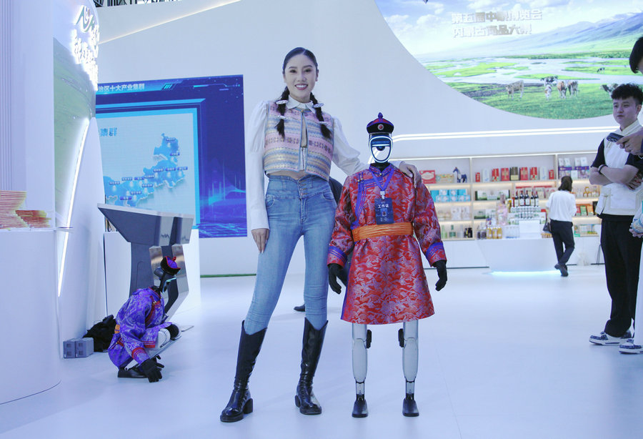 與網(wǎng)紅機(jī)器人合影 北疆新聞?dòng)浾?張楊攝影