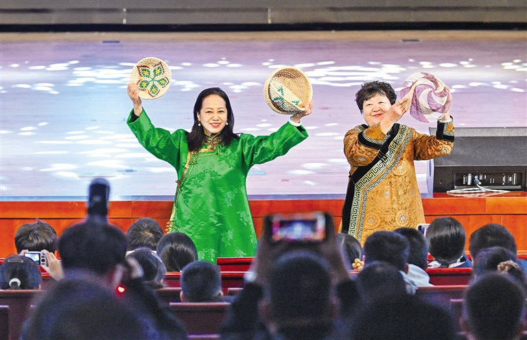 對接會設(shè)在北京一零一中學(xué)圓明園校區(qū),現(xiàn)場,內(nèi)蒙古特色非遺、歌舞表演異彩紛呈,鮮活展現(xiàn)絢爛多彩的北疆文化。北京交通大學(xué)現(xiàn)代旅游研究學(xué)院院長張輝作“研學(xué)旅游高質(zhì)量發(fā)展”主旨演講。自治區(qū)文旅廳發(fā)布了2025年研學(xué)旅游新品,重磅推出深度融合內(nèi)蒙古的自然地理、歷史文化、科學(xué)技術(shù)與民族風(fēng)情的4條主線、20條支線的研學(xué)旅行路線,還系統(tǒng)推出一批具有地域特色與文化內(nèi)涵的精品主題研學(xué)旅游產(chǎn)品,全方位展示了內(nèi)蒙古研學(xué)旅游的獨特魅力和發(fā)展?jié)摿?。?nèi)蒙古藝術(shù)劇院烏蘭恰特藝術(shù)培訓(xùn)中心推介了北疆文化藝術(shù)研學(xué)產(chǎn)品;中國鐵路呼和浩特局發(fā)布京蒙研學(xué)旅游專列計劃,并進(jìn)行京蒙兩地研學(xué)公司客源互通簽約儀式;中國旅游協(xié)會研學(xué)旅行分會與內(nèi)蒙古自治區(qū)旅游協(xié)會進(jìn)行合作簽約?;顒舆€設(shè)置“少年那達(dá)慕”互動體驗,吸引不少青少年現(xiàn)場打卡體驗北疆文化?!皟?nèi)蒙古是一個自然與人文交織的遼闊課堂,期待走進(jìn)內(nèi)蒙古,用腳步丈量、用心靈感受內(nèi)蒙古。”北京教育學(xué)院豐臺分院附屬學(xué)校學(xué)生高晟恩說。