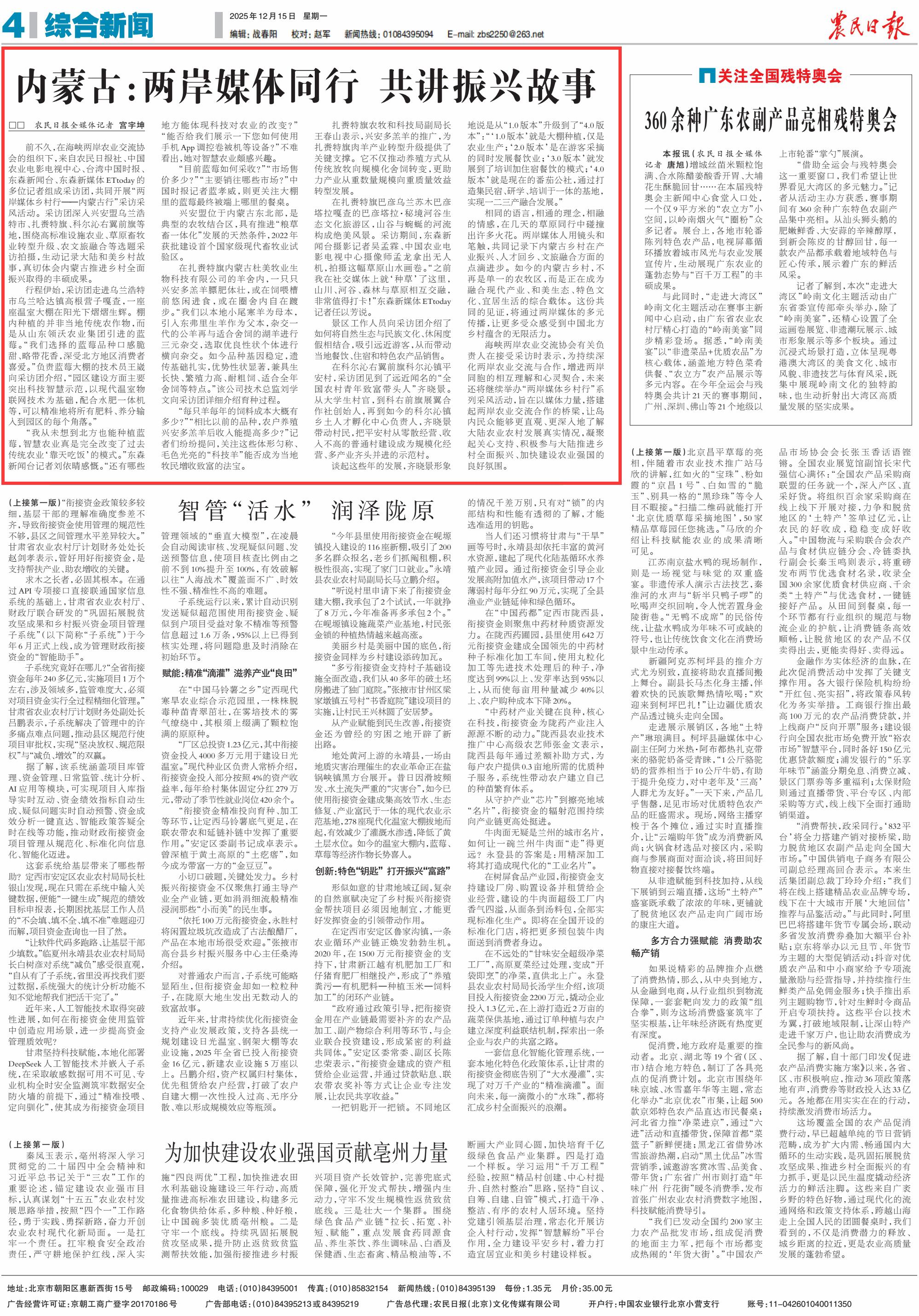 2025年12月15日《農(nóng)民日報》第4版刊發(fā)了《內(nèi)蒙古:兩岸媒體同行 共講振興故事》的文章,報道了前不久,在海峽兩岸農(nóng)業(yè)交流協(xié)會的組織下,來自農(nóng)民日報社、中國農(nóng)業(yè)電影電視中心、臺灣中國時報、東森新聞臺、東森新媒體ETtoday的多位記者組成采訪團(tuán),共同開展“兩岸媒體鄉(xiāng)村行——內(nèi)蒙古行”采訪采風(fēng)活動。兩岸媒體人用鏡頭和筆觸,共同記錄下內(nèi)蒙古鄉(xiāng)村在產(chǎn)業(yè)振興、人才回鄉(xiāng)、文旅融合方面的點滴進(jìn)步。這份共同的見證,將通過兩岸媒體的多元傳播,讓更多受眾感受到中國北方鄉(xiāng)村蘊(yùn)含的無限活力。
