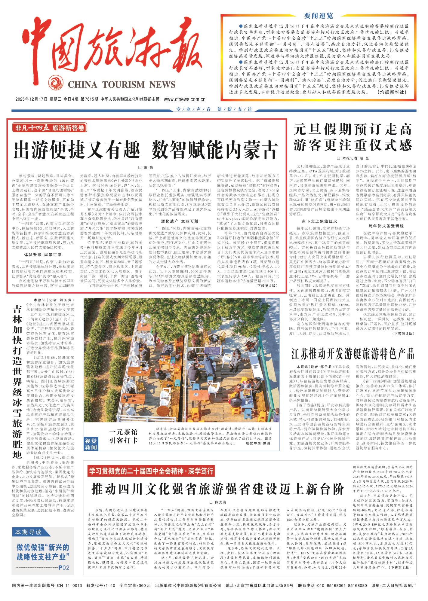 2025年12月17日《中國旅游報》第1版刊發(fā)了題為《593件旅游商品獲內蒙古品牌標識授權》的文章,報道了內蒙古全域智慧文旅公共服務平臺“i游內蒙古”近日上線試運行,這個集“食住行游購娛”服務功能于一體的平臺不僅可以為市民游客提供一站式文旅服務,更標志著內蒙古在構建“全域、全時、全季、全業(yè)”智慧文旅新生態(tài)進程中邁出堅實一步。