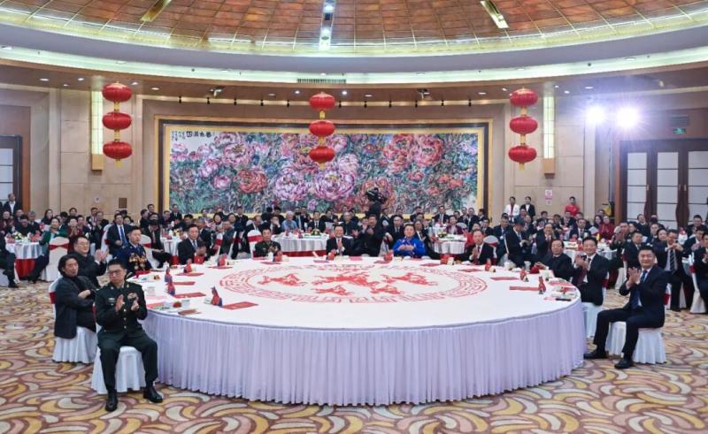新城賓館國宴廳內(nèi)張燈結彩,與會各界人士互致問候、祝福新春,現(xiàn)場洋溢著歡樂喜慶的節(jié)日氣氛。