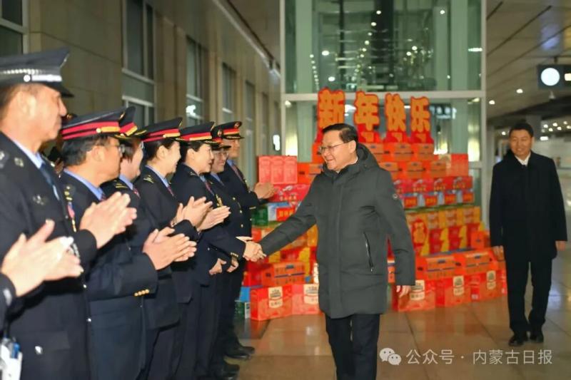春節(jié)將至,首府的街頭張燈結(jié)彩,處處洋溢著喜慶祥和的節(jié)日氛圍。王偉中一行首先來到賽罕區(qū)一中隊交警執(zhí)勤崗點,親切慰問正在執(zhí)勤的民警,送上新春美好祝福,感謝大家的默默堅守和無私付出。王偉中叮囑大家注意防寒保暖,以良好狀態(tài)守護(hù)城市平安暢通。在萬正廣場環(huán)衛(wèi)站,王偉中一行看望慰問辛勤工作的環(huán)衛(wèi)工人。王偉中說,你們是城市的“美容師”,每天起早貪黑、風(fēng)雨無阻,用辛勤勞動換來了城市的清潔美麗,大家辛苦了。有關(guān)部門要多關(guān)心他們的工作和生活,細(xì)化關(guān)愛舉措,健全保障機(jī)制,在全社會營造尊重環(huán)衛(wèi)工人、珍愛生活環(huán)境的良好氛圍。隨后,王偉中一行來到呼和浩特火車東站,仔細(xì)詢問春運(yùn)期間人流車流、安全保障等情況。王偉中強(qiáng)調(diào)要精準(zhǔn)把握春節(jié)群眾出行規(guī)律,加強(qiáng)運(yùn)力調(diào)配、客流疏導(dǎo)和秩序維護(hù),深入排查整治安全隱患,切實提升服務(wù)質(zhì)量,讓群眾出行更安全、更舒心。