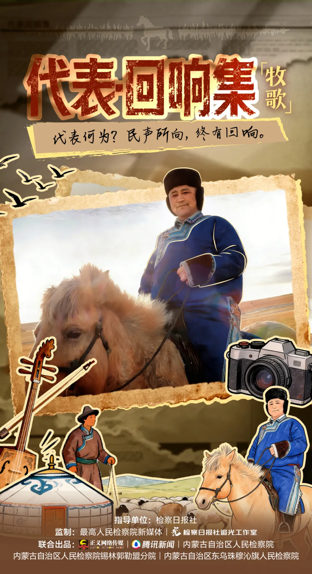 風(fēng)吹草原,帶來無邊的綠浪,也帶來牧民們的歌聲。那些牧歌訴說著草原的期盼。代表何為?讓民聲所向,終有回響。檢察何為?助聲聲回響,落回草原,成就年年綠野蒼蒼?!?/p>