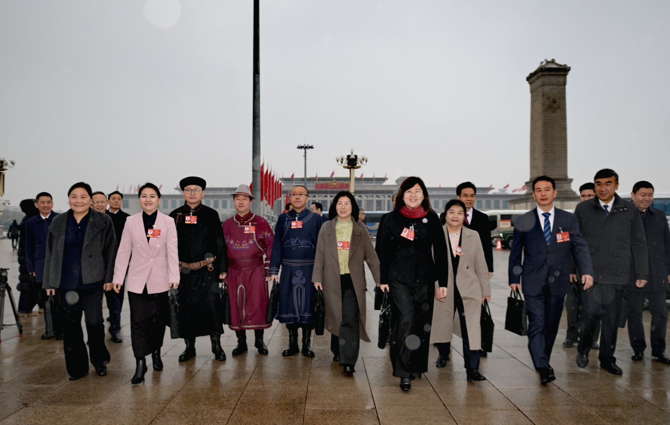 3月5日上午,十四屆全國人大四次會議在京開幕,內(nèi)蒙古代表團代表精神抖擻、滿懷信心地走向會場。草原云記者 馬建兵 攝