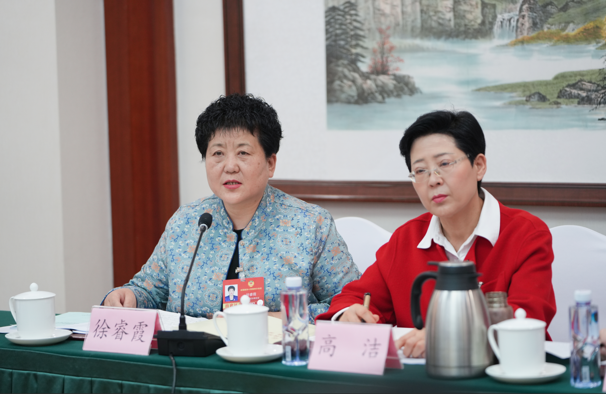 3月5日,住內(nèi)蒙古全國政協(xié)委員徐睿霞(左)建議,設(shè)立烏梁素海生態(tài)保護與系統(tǒng)治理專項基金,開展跨學科聯(lián)合攻關(guān),重點研發(fā)低成本、生態(tài)友好的底泥污染治理與資源化利用技術(shù)。草原云記者 王鵬 攝