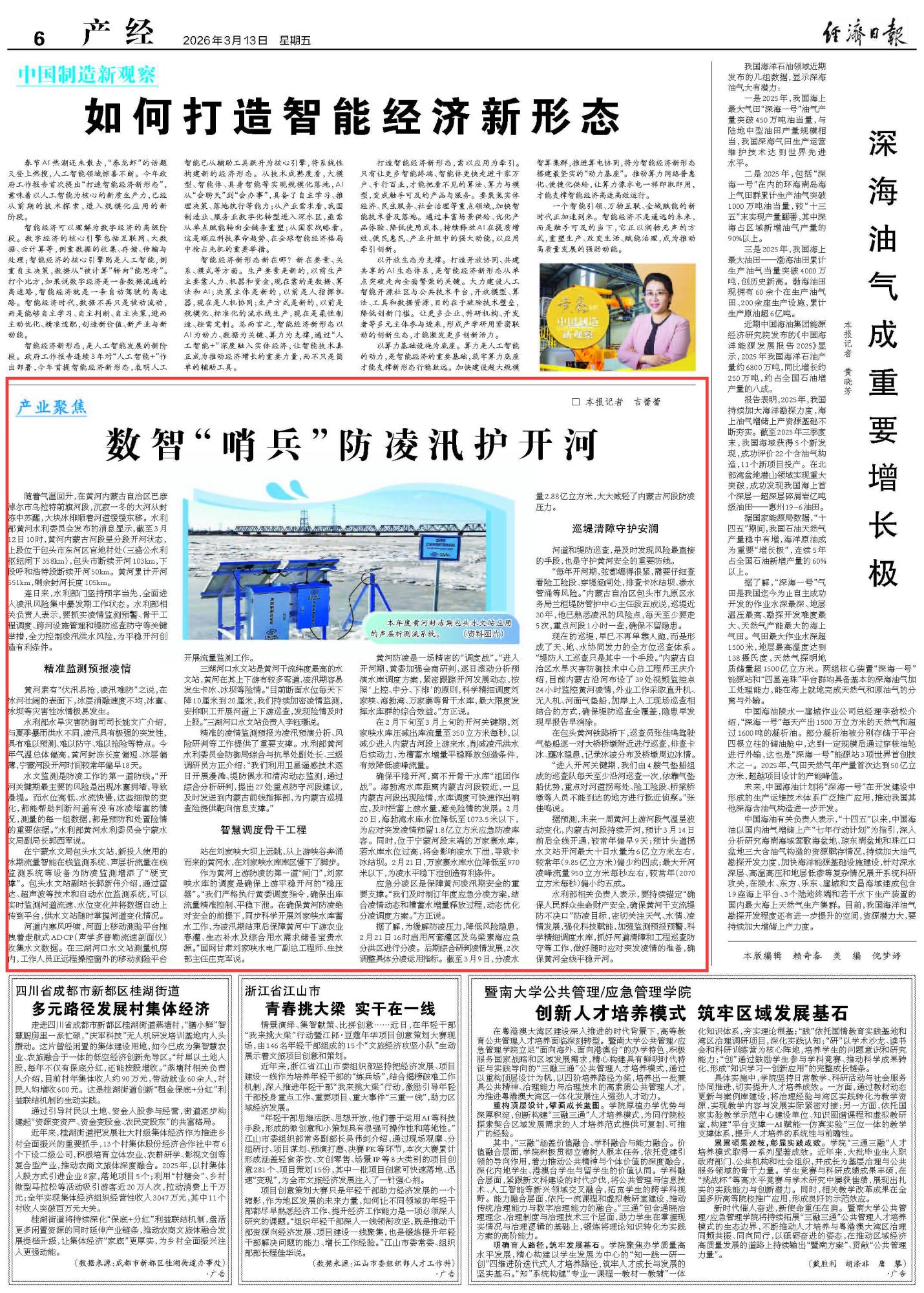 2026年3月13日《經(jīng)濟日報》第6版刊發(fā)了《數(shù)智“哨兵”防凌汛護開河》的文章,報道了3 月 12 日,黃河內(nèi)蒙古河段呈分段開河狀態(tài),累計開河 551 公里,剩余封河 105 公里。今年寧蒙河段開河偏早,凌汛風險突出,水利部門通過精準監(jiān)測預報、智慧調(diào)度骨干水庫、啟用應急分洪區(qū)、開展全方位巡堤清障等舉措,全力保障開河平穩(wěn)。預計 3 月 14 日前后內(nèi)蒙古河段全線開通,各項防凌工作正有序推進。