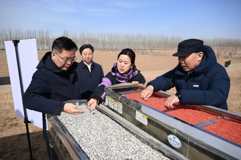 3月15日,包鋼在臨河農(nóng)場詳細了解種子、肥料等農(nóng)資準備,詢問高標準農(nóng)田建設進展和優(yōu)質(zhì)農(nóng)產(chǎn)品生產(chǎn)銷售情況。草原云·內(nèi)蒙古新聞網(wǎng)記者 韓卿立 攝
