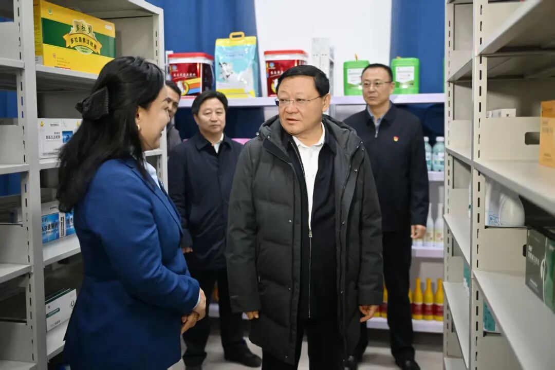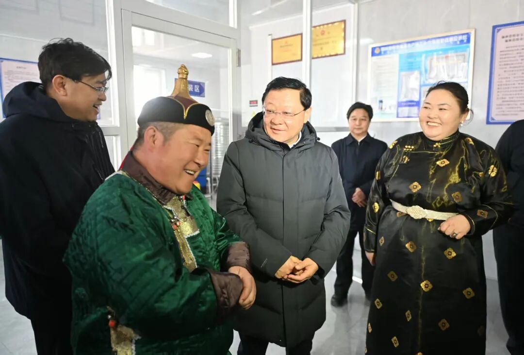 3月23日,自治區(qū)黨委書(shū)記、人大常委會(huì)主任王偉中在阿巴嘎旗伊克塞畜牧服務(wù)有限公司調(diào)研獸醫(yī)機(jī)構(gòu)社會(huì)化服務(wù)情況。草原云·內(nèi)蒙古新聞網(wǎng)記者 馬建兵 攝