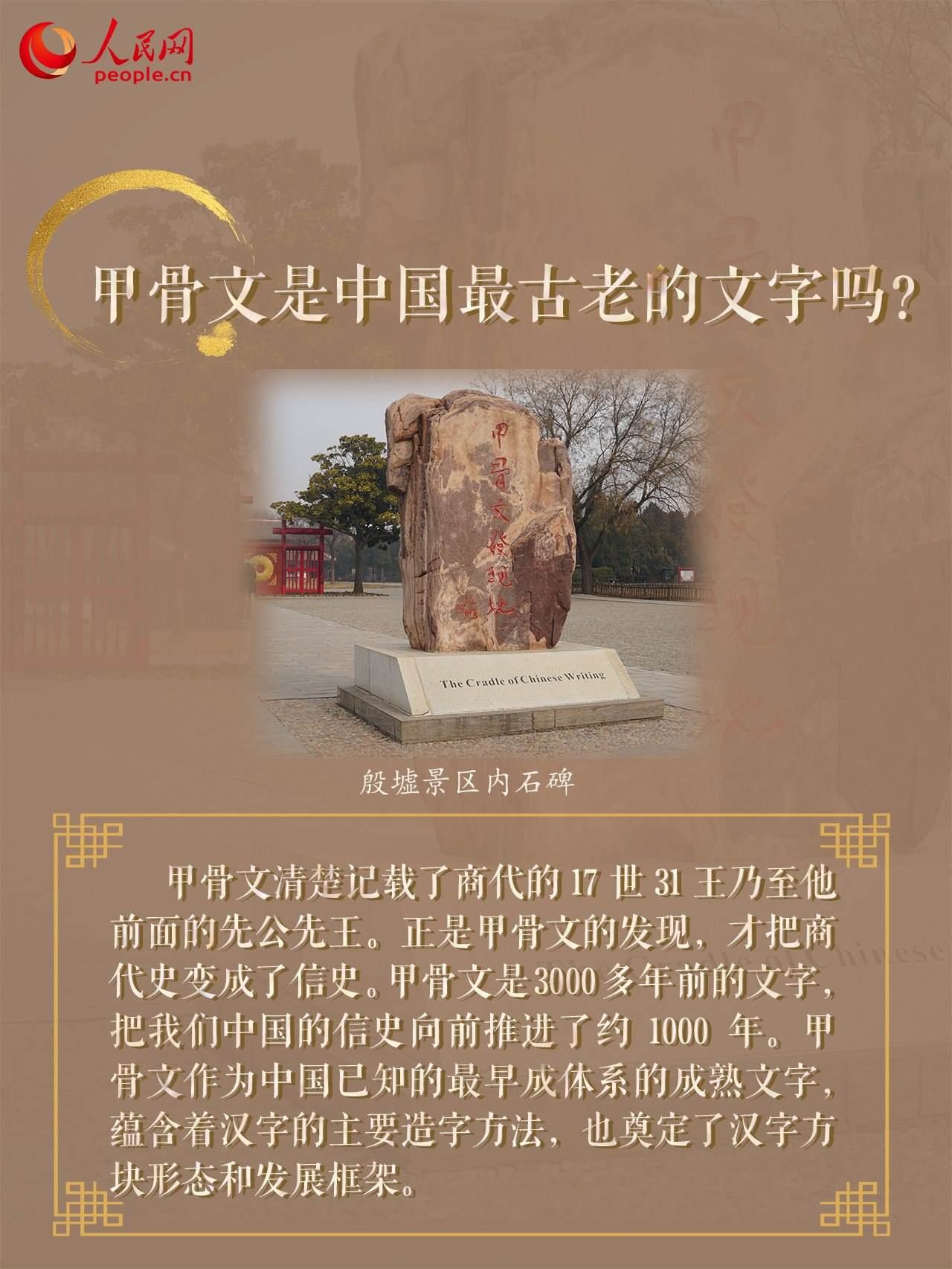 近日,由中央網(wǎng)信辦網(wǎng)絡傳播局指導的“寫意中國——探尋漢字起源”網(wǎng)上主題宣傳活動正在開展。記者走進位于河南安陽的殷墟遺址,一眼閱盡千年,探尋中華文明的古老密碼,感受遠古甲骨文的獨特魅力。常說的“一片甲骨驚天下”指的是什么?什么地方被學術界譽為“中國最早的圖書館”?中國歷史上第一位巾幗女將軍是誰?跟隨記者實地探訪,一起來了解殷墟的文化密碼!