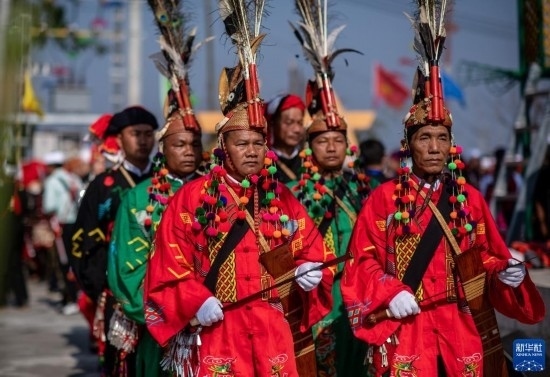 當(dāng)日,云南省德宏傣族景頗族自治州瑞麗市2023年目瑙縱歌節(jié)在位于中緬邊境的勐秀鄉(xiāng)戶瓦山寨開(kāi)幕。