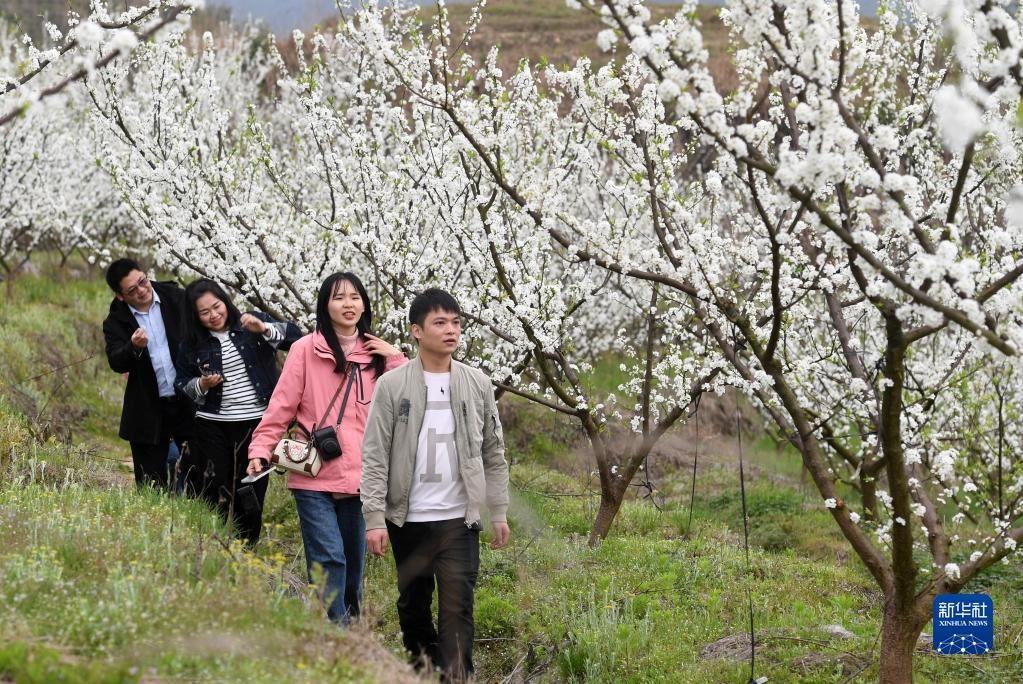 3月17日,在廣西金秀瑤族自治縣忠良鄉(xiāng)巴勒村,游客在賞花拍照。眼下,廣西金秀瑤族自治縣忠良鄉(xiāng)巴勒村李花綻放,吸引游客前來踏春賞花。新華社記者 陸波岸 攝